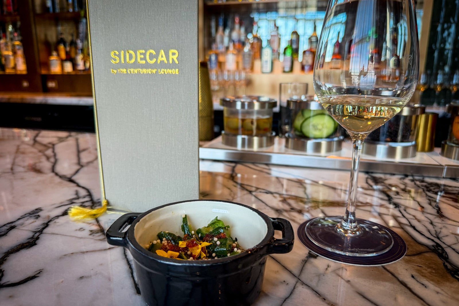 Picture this: a vibrant crushed cucumber salad with crispy rice pearls, or perfectly executed avocado toast with schug labneh and black sesame seeds. Even a classic Sidecar cocktail, expertly mixed with cognac, Cointreau, and lemon juice, elevates the experience beyond typical airport fare.