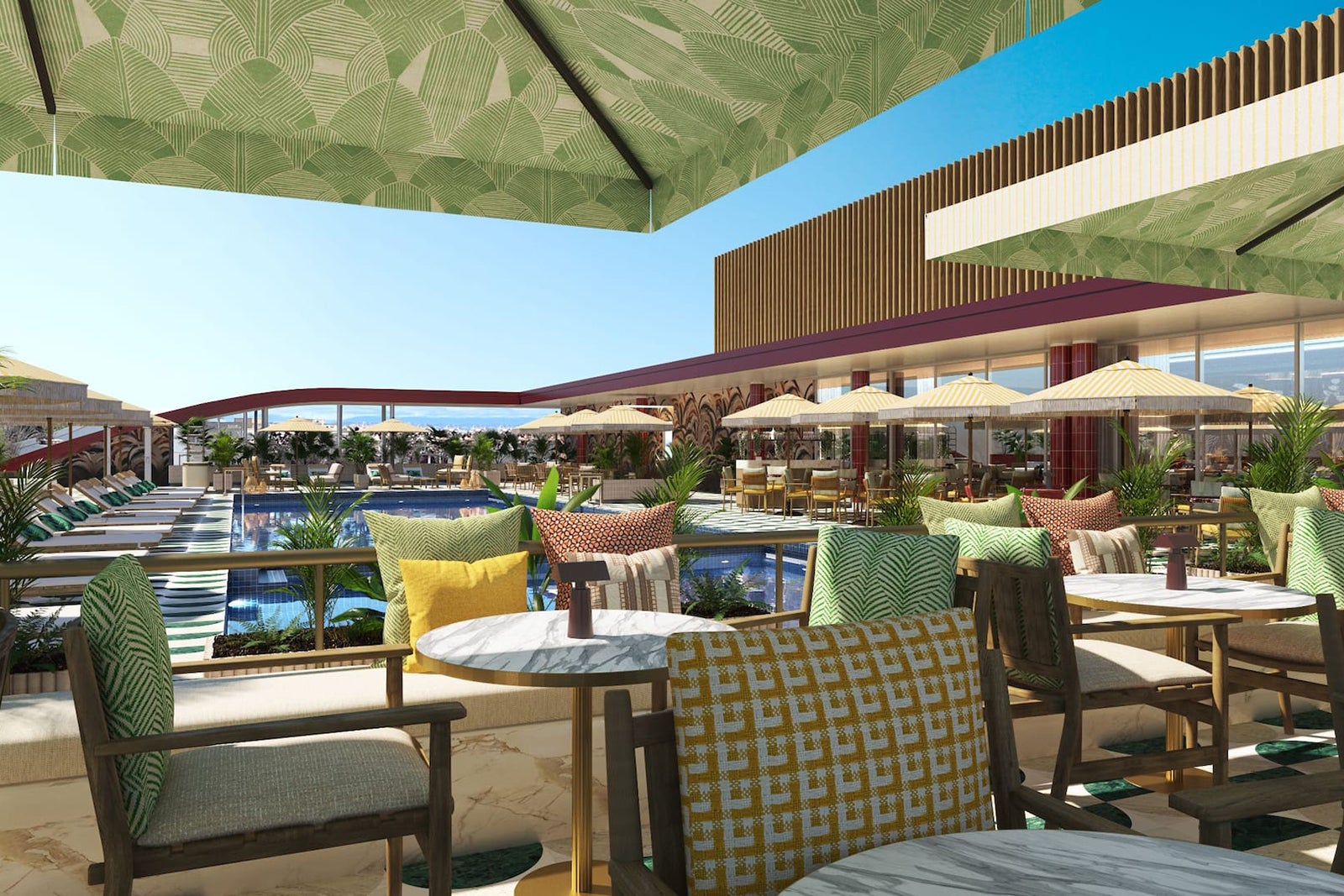 One unique feature of the hotel is a heated rooftop pool, a rare feature in Rome, especially in the urban center. Alongside it will be the Pool Bar and lounge — one of four culinary offerings at the hotel. The other options are Asian-inspired Niroma, Italian-American breakfast spot and evening bar space Ciao, Brooklyn!, and the all-day lobby lounge and bar Juno.
